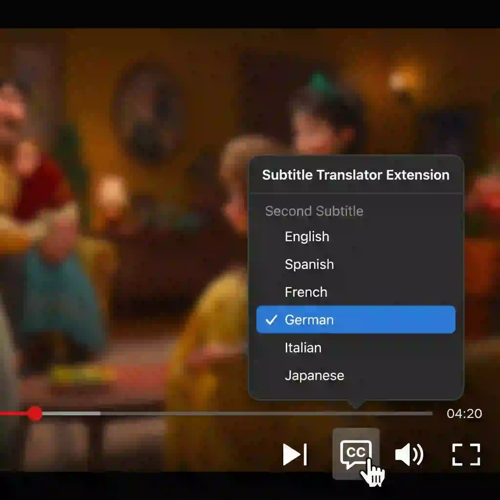 Once the installation is complete, open the Netflix website. Play any video. Move your cursor over the subtitle icon at the bottom of the player. You will notice a new panel added by the plugin. It sits right next to Netflix’s native options. Here, you can select your ‘second subtitle language’.
